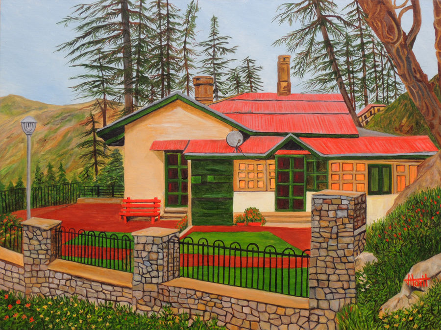 Buy Dream House In Shimla Size 40x30 In created by Artist Ajay Harit at lowest price in India
