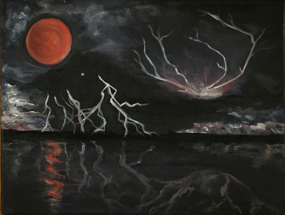 Lunar Eclipse peinture orage foudre orage lune de sang | Etsy